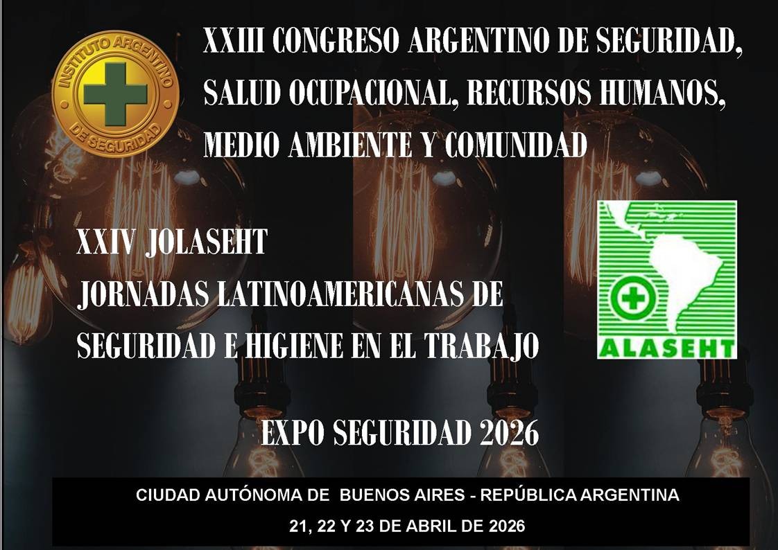 El Instituto Argentino de Seguridad, organizador del XXIII CONGRESO ARGENTINO SEGURIDAD, SALUD OCUPACIONAL, RECURSOS HUMANOS, MEDIO AMBIENTE Y COMUNIDAD, conjuntamente con las XXIV JOLASEHT – JORNADAS LATINOAMERICANAS DE SEGURIDAD E HIGIENE EN EL TRABAJO y la EXPO SEGURIDAD 2026, que se llevarán a cabo los días 21, 22 y 23 de Abril de 2026, en el Centro de Eventos y Convenciones “Palais Rouge” de C.A.B.A., presenta Promociones Especiales para que Empresas, Fabricantes y Distribuidores de Equipos de Seguridad, puedan participar del Congreso y de las Jornadas Latinoamericanas con su Logo, en las credenciales, carpetas, certificados, carteles, promociones, incluyendo la participación con un stand en la Expo, para poder exhibir sus banners, productos ó servicios, ante la concurrencia de Autoridades, Delegados y público en general, Nacional y Latinoamericano, integrando en los combos la colaboración publicitaria para el año 2026 en la “Revista de Seguridad” y en nuestra página web con un slider dinámico.